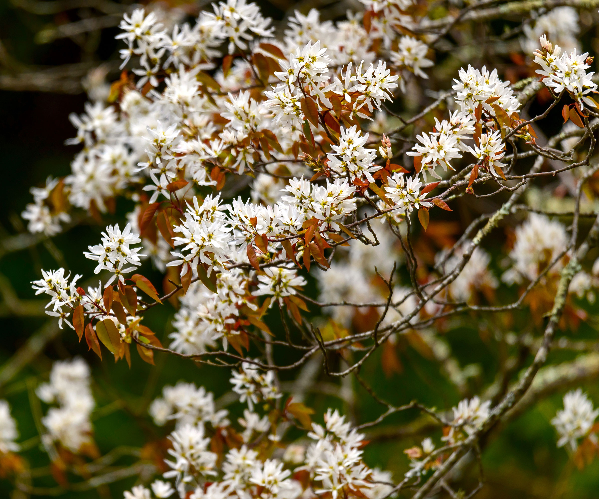 Du kan odla denna pollinerarvänliga växt, som är hemma i östra USA, som en stor buske eller ett litet träd med flera stammar, beroende på hur du beskär den. För trädgårdsmästaren ger odlingen av servicebär (Amelanchier spp.) vårblommor, lila frukter och höstlövverk. Pollinerare älskar de små blommorna, medan fåglarna äter bären. Bären är också ätbara för människor.