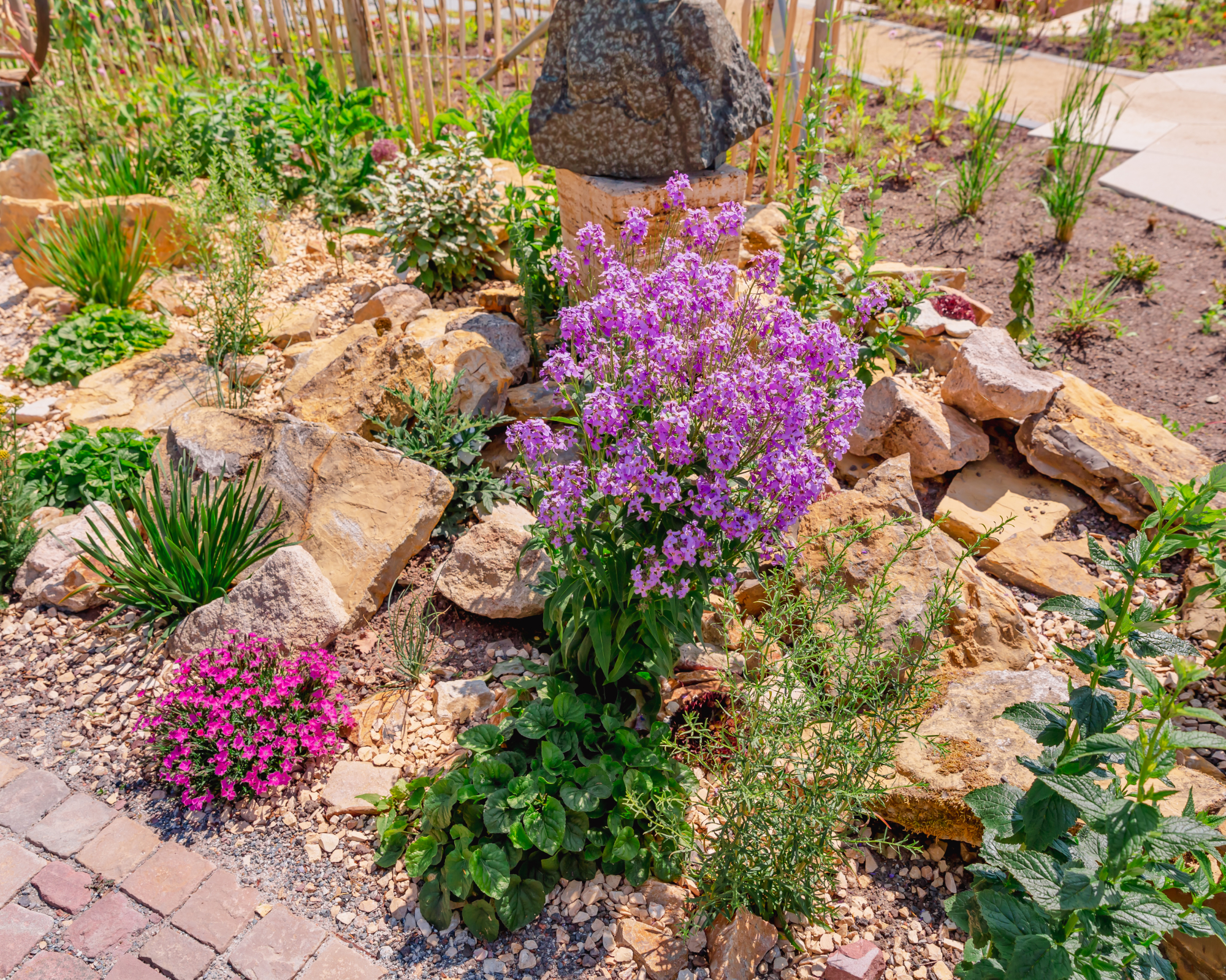 Om ditt mål är en japansk sten trädgård är små lönnar, azaleor, iris och mugo-tall några alternativ. En alpin stenparti kan innehålla rosmarin, krypande enbär, Aubrieta, krypande timjan och Dianthus.