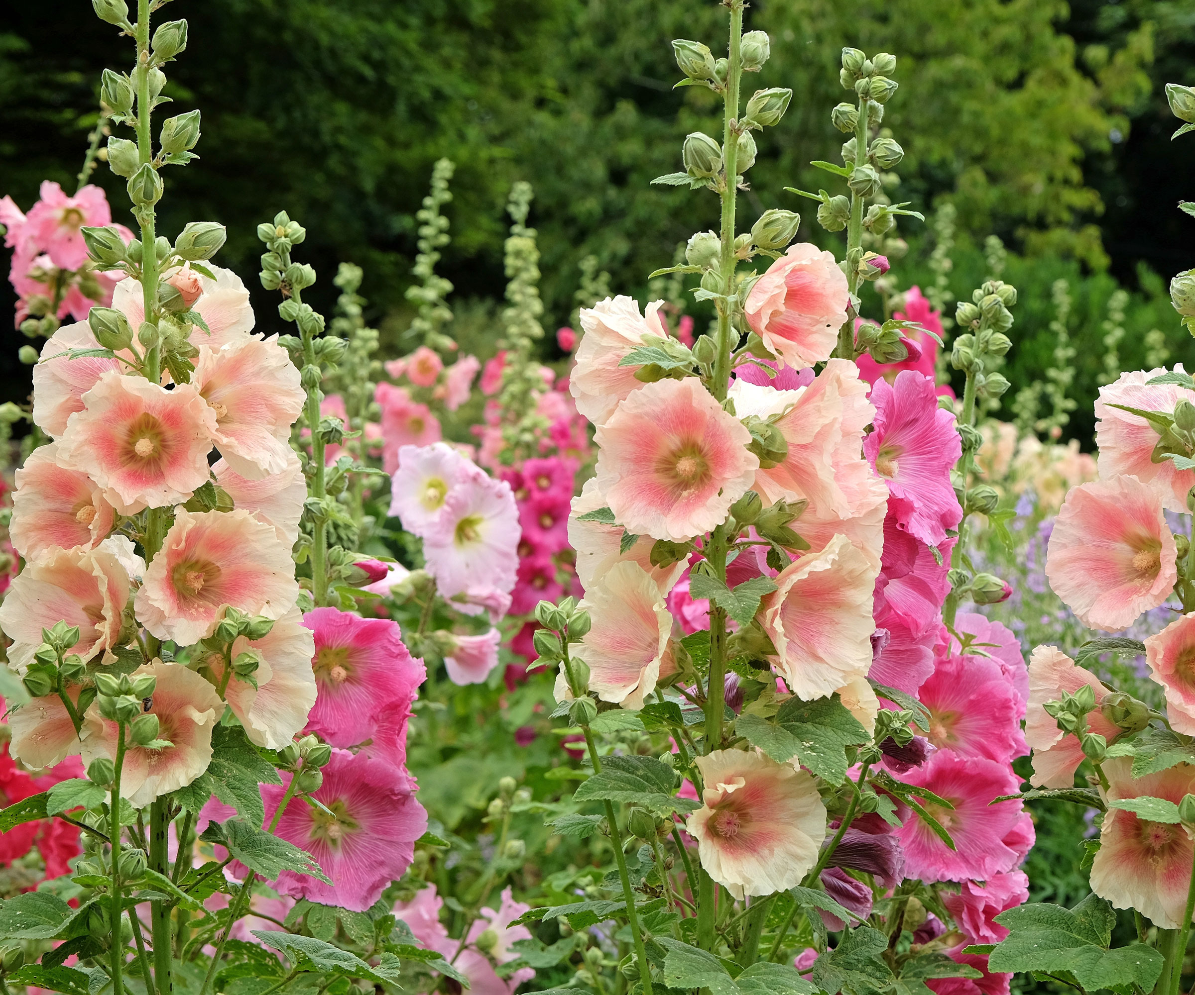 Stockrosor är de höga gamla favoriterna med stora, färgglada blommor som liknar fat och grova blad som tenderar att resa sig högt över människors trädgårdar. Tyvärr älskar skalbaggar dem och sliter dem i bitar.