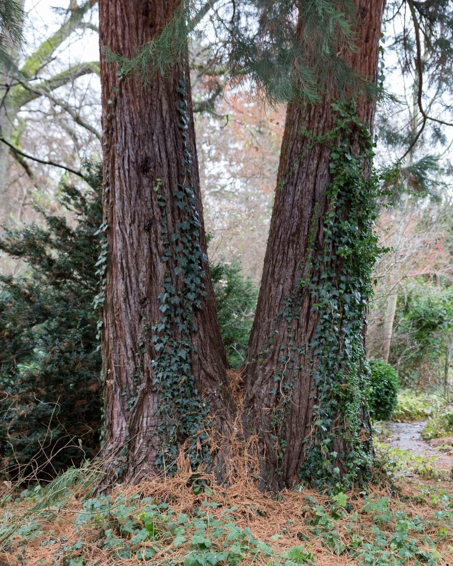 Om du har vinstockar på träd som orsakar skador, bör du veta hur man tar bort vinstockar från träd. Börja inte riva bort vinstockarna från träden. Skär istället av stammen på varje vinstock längst ner på trädet. Du kan behöva en såg för tjockare vinstockar. Detta berövar vinstocken dess näringskälla. (Skydda alltid dig själv när du tar bort vinstockar som giftig murgröna.) Dra sedan upp alla vinstockar ur marken i ett tjockt område runt stammen. Detta förhindrar att vinstocken gör ett nytt försök att ta över trädet. Lämna vinstockarna som växer i trädet ifred. Att ta bort vinstockar från träd genom att dra bort dem från stammen kan skada trädet.